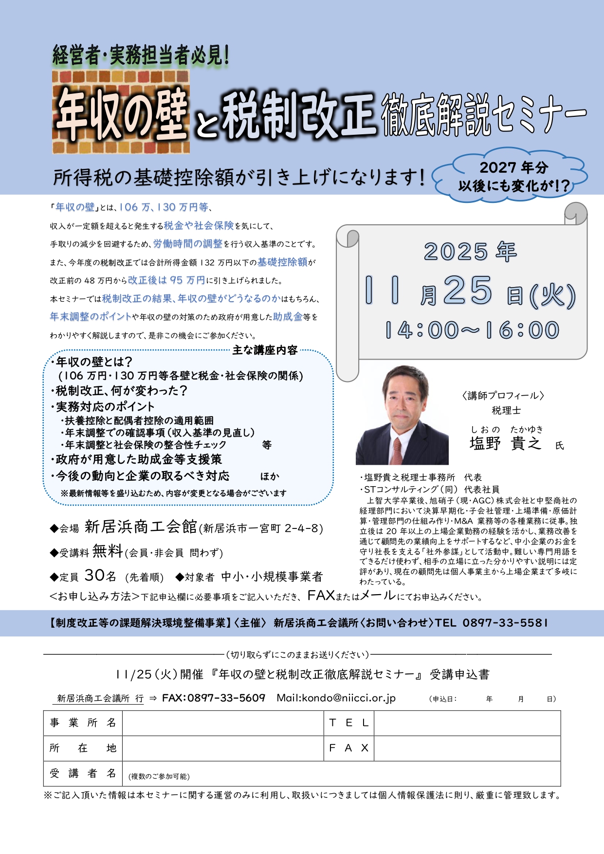 > 11/25(火)開催「年収の壁と税制改正徹底解説セミナー」のご案内【制度改正等の課題解決環境整備事業】