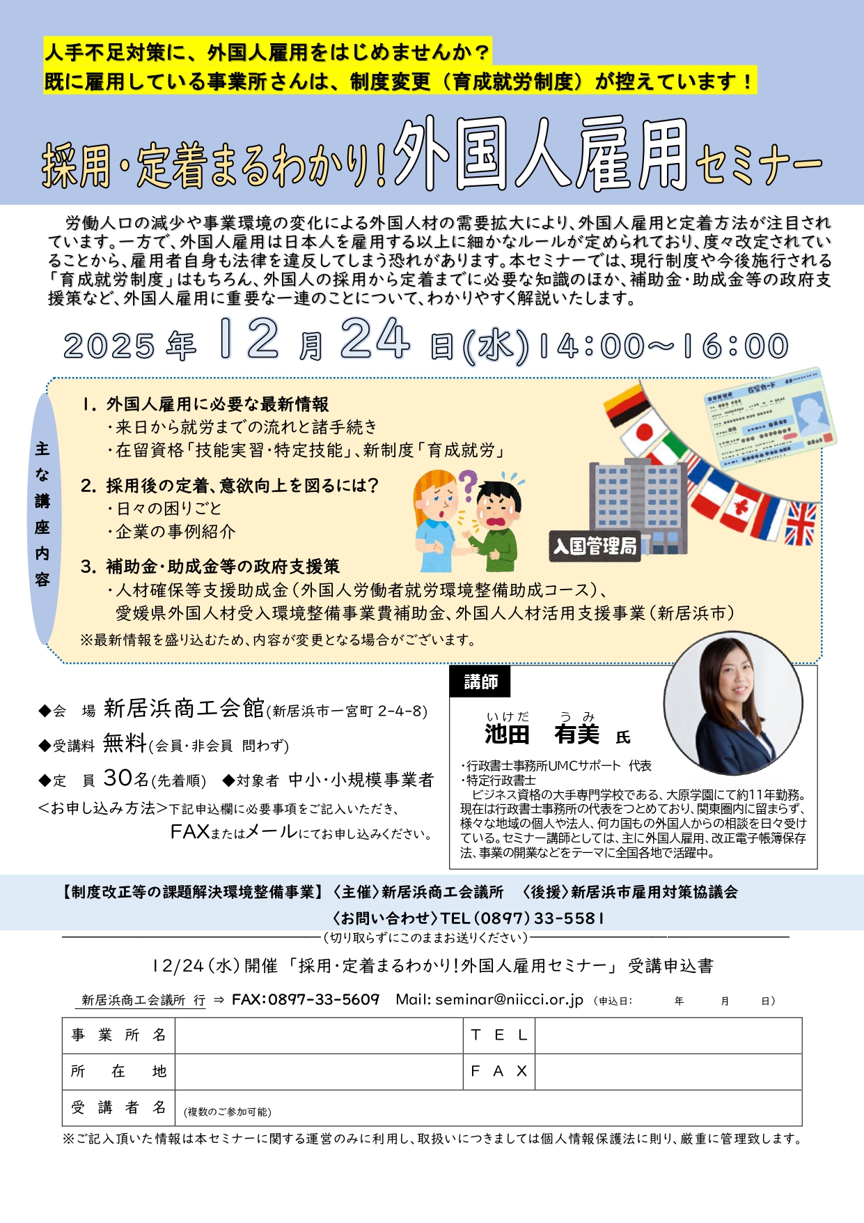 12/24(水)開催「採用・定着まるわかり!外国人雇用セミナー」のご案内【制度改正等の課題解決環境整備事業】