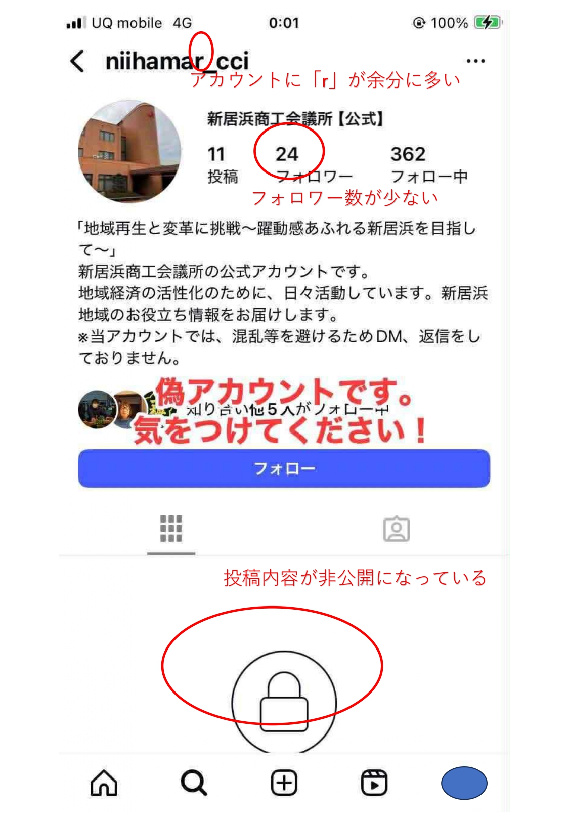 > 【注意喚起】新居浜商工会議所インスタグラムなりすましアカウントのお知らせ